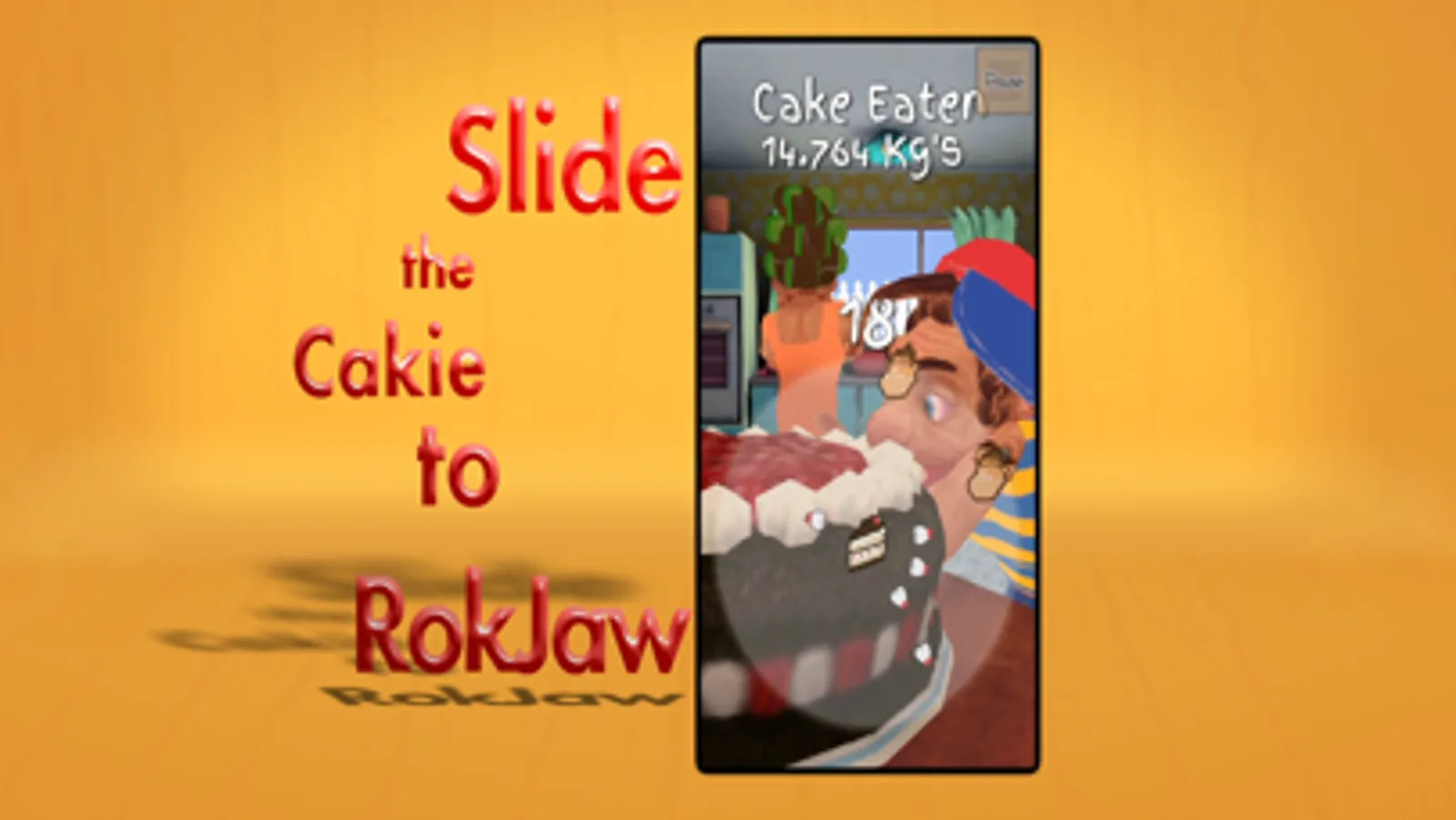 * Just slide the cake with your finger into Rokjaw's mouth, but be careful to avoid the teeth. The faster you do this, the more you score. Each time you pull this off, a new round will start again. Rokjaw always wants "cakie".