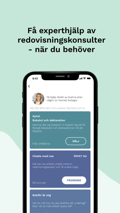 allmänna frågor om bokföring eller hjälp med ditt bokslut, hjälp finns att få direkt i appen!