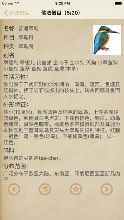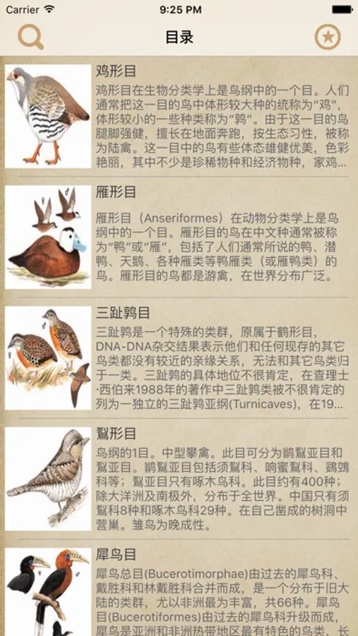 本应用还有关键词搜索功能,可以让您准确迅速的找到您想了解的鸟类知识;