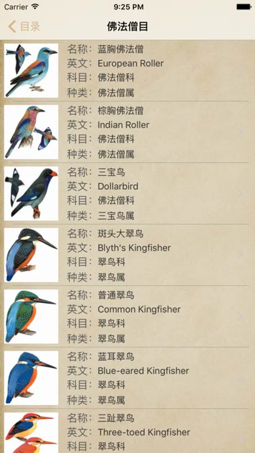 本应用详细收录一千三百多种鸟类,共分为17种目录;74科目,300多个种类。每个鸟类都有详细的说明,包括对生活习性、外形特征、鸟类鸣叫以及分布状况等介绍,让您更加全面了解;并每个鸟类都有对应清晰图片,可以放大缩小,方便查看、辩论;