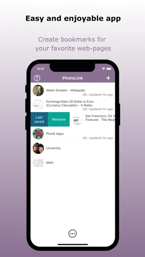• Create bookmarks for frequently visited web-pages and open them directly from the Widget (by tapping the 'Launch PhotoLink' button).