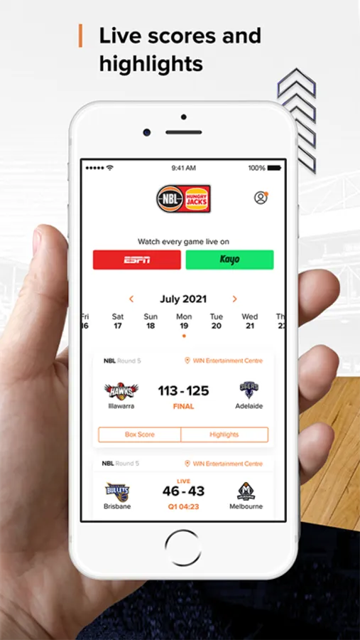 The new and improved NBL App gives you everything you need to follow the Hungry Jack's National Basketball League at your fingertips. Get up to the minute breaking news, live scores, video, follow your team, more stats than you can imagine and the ultimate companion to your TV viewing on ESPN, Kayo and 10Peach.