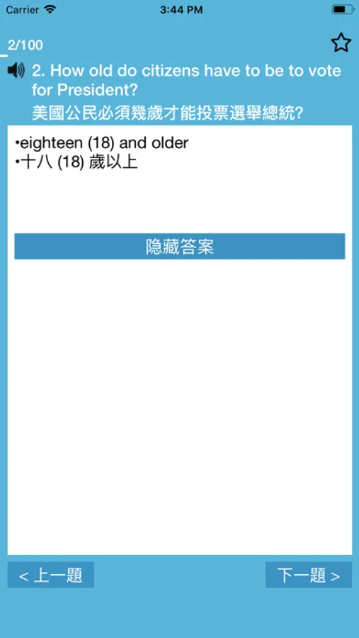 Practice for the US citizenship interview with Cantonese Chinese questions and answers. Use the app to review questions through flashcards, save difficult items, or listen to pronunciation. Includes multiple practice modes and audio features for study.