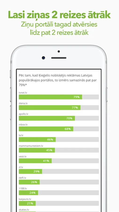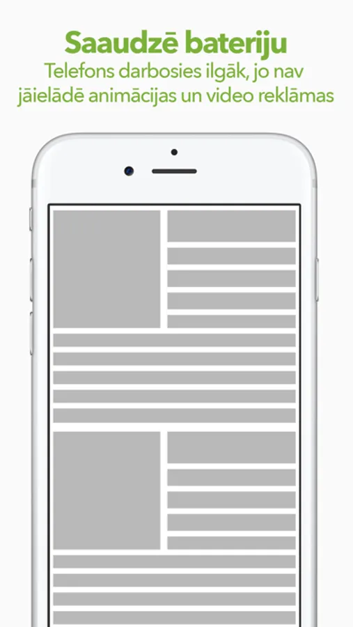 - ilgāks telefona baterijas laiks, jo atverot lapas, nav jāielādē un jārāda reklāmas