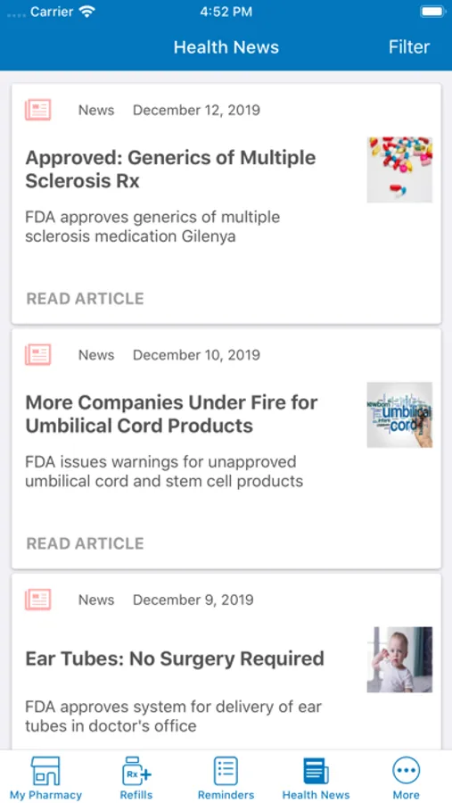* Access a history of your medications and Rx numbers