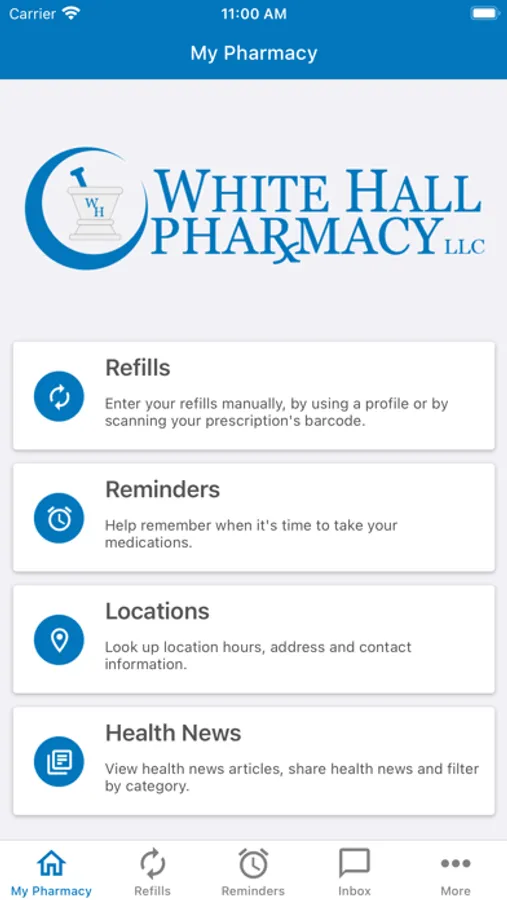 The White Hall Pharmacy app allows you and your family to securely communicate with your local pharmacy. Refill your prescriptions with one click, get refill reminders, get discounts at your local pharmacy, get savings on brand drugs and access Pharmacist written pages that help you understand your condition or medications.