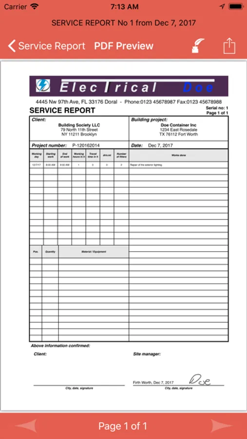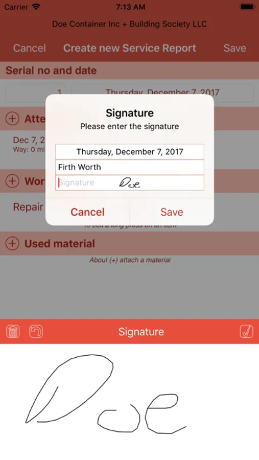 The service reports can be signed directly in the app by the client. Where the customer signature is not saved but for privacy reasons directly written in a PDF. If a service report signed by the client is processed, the customer's signature will be lost.