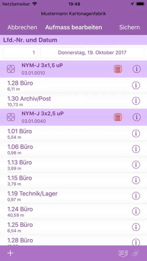 Es können in jedem Baustellenaufmaß beliebig viele Aufmaßpositionen mit LV-Positionen und Raummengen aufgenommen werden.