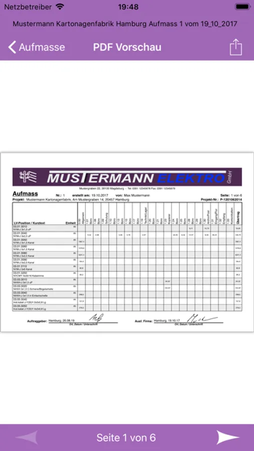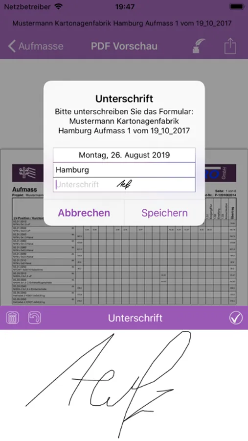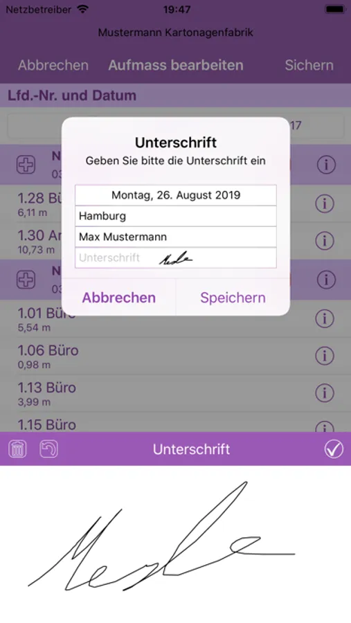 Die Baustellenaufmaße können direkt in der App vom Auftraggeber unterschrieben werden.
