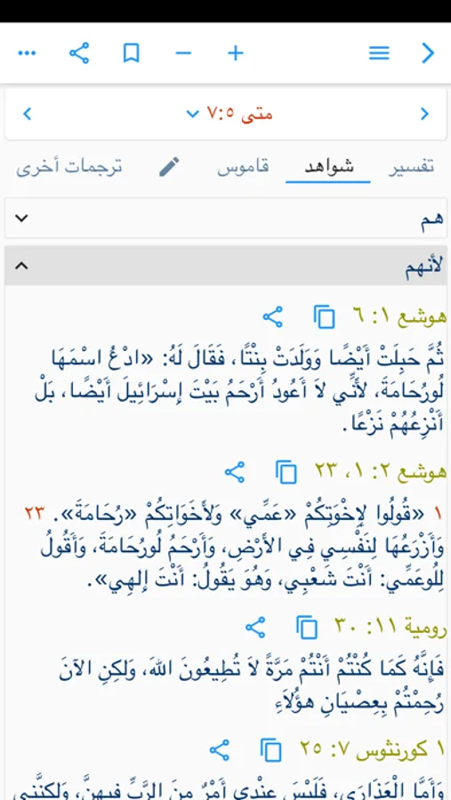 provides verse by verse commentaries by well known authors such as William MacDonald, Henry Ironside, Nashed Hanna and others. Simply tap a verse to view a list of commentaries by author as well as Treasury of Scripture Knowledge (TSK) references. Users can also share verses on social media.