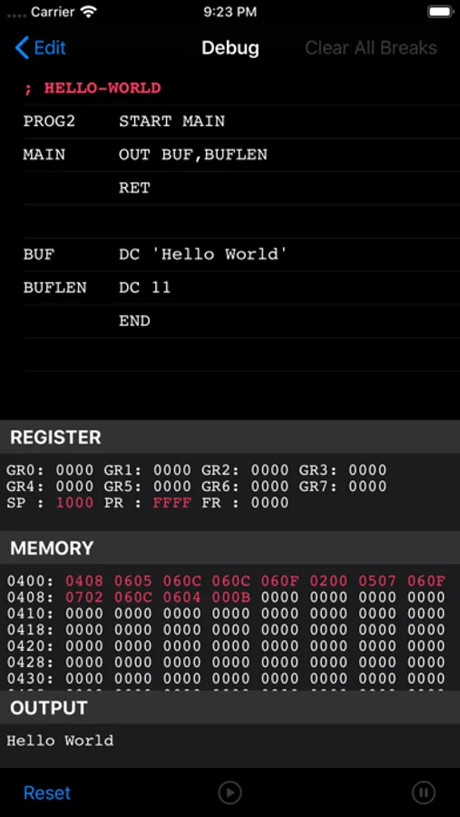 ・エラーが無ければ「Run>」でDebug画面に移動してください。