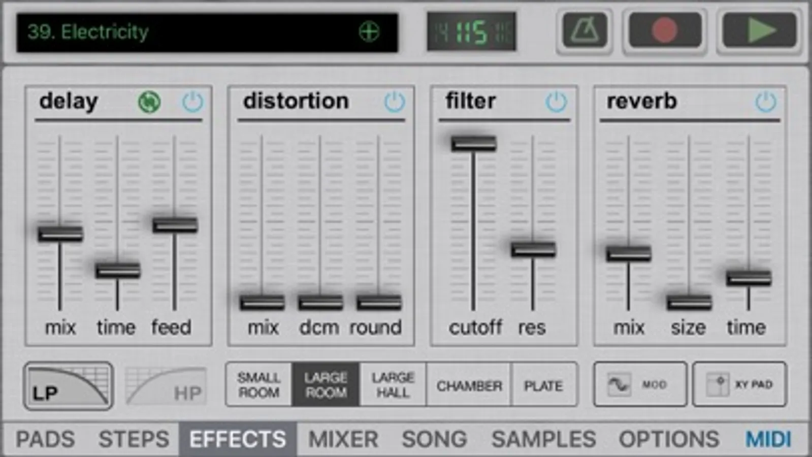– Record patterns in real-time with quantization, MIDI assignable