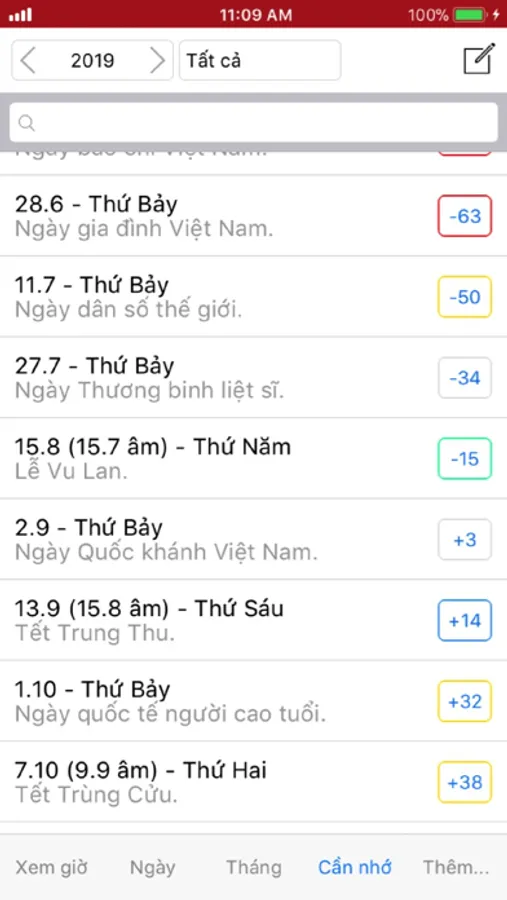 - Theo dõi những ngày cần nhớ (siunh nhật, kỵ giỗ,...), những ngày cần quan tâm (ngày lễ, ngày kỷ niệm,...)