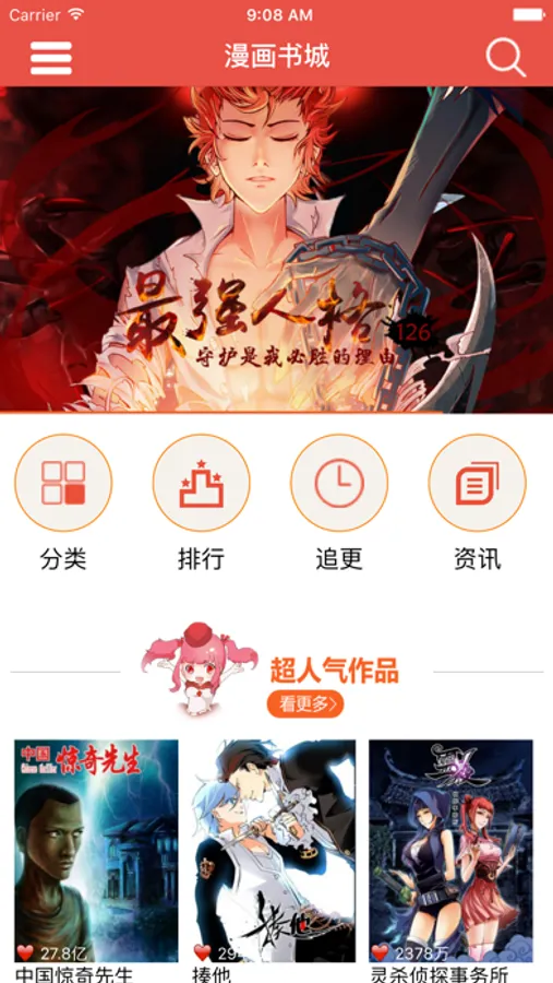 一款简单的漫画阅读软件,可以观看大部分在线漫画,实时更新,还有一些动漫资讯.
