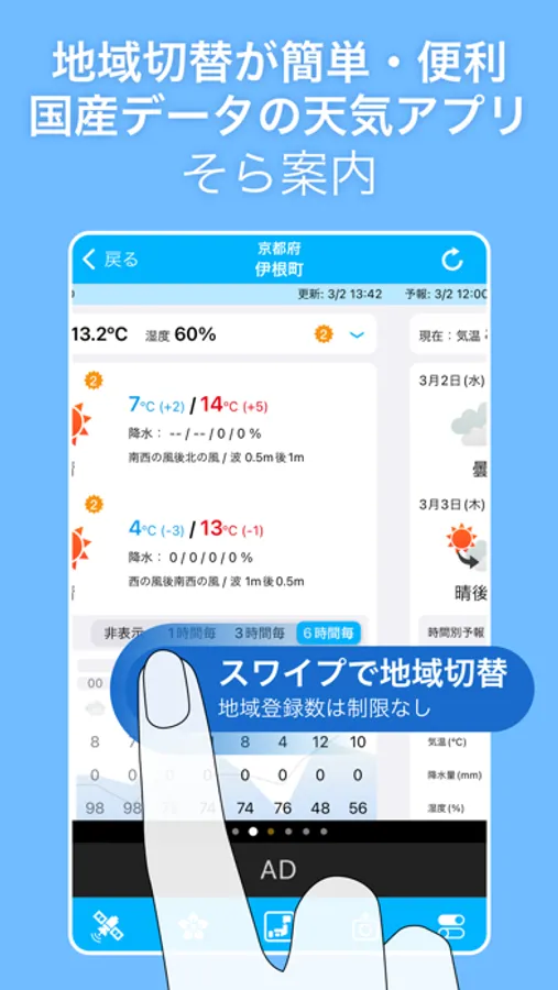 そら案内は、日本気象協会が提供する気象情報に基づき国内各地の天気予報を表示するアプリケーションです。