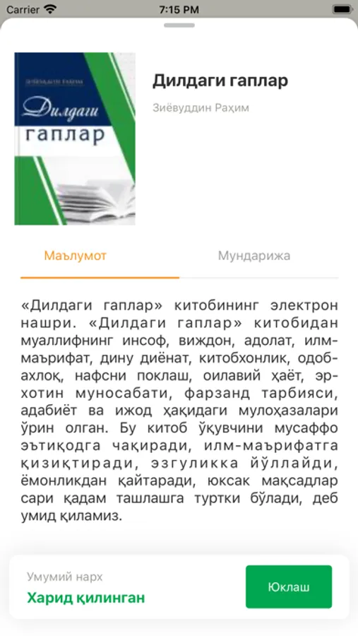Сиз ушбу дастур ёрдамида «Hilol Nashr» нашриётининг китоблари ва медиамаҳсулотларини саҳифамиздан сотиб олиб, улардан iOS тизимида ишловчи жиҳозларда фойдаланишингиз мумкин.