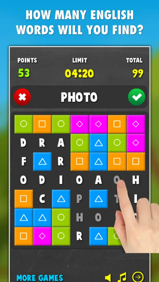 3. If the word exists there will be shown a green tick, tap it to submit your word! Longer words you create, better score you get!