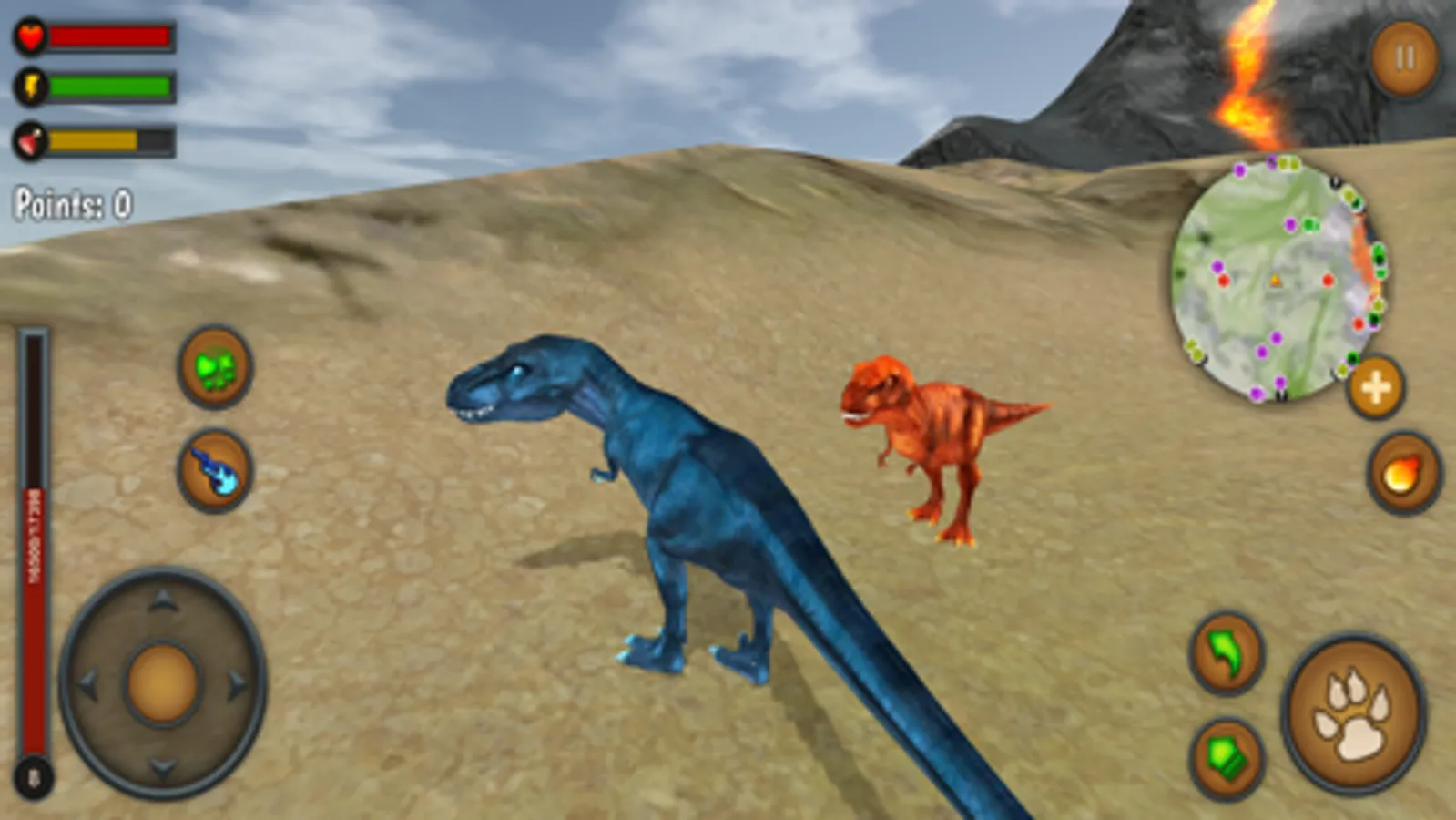 -- The weather and time of day is dynamic. The longer you survive, the more changes you will experience. -- Fast paced and Continuous action game play -- Refill your energy by defeating the enemy dinos Come stop by our Facebook page: https://www.facebook.com/wildfootgames Also be sure and check out our other 3D animal simulators. We understand that the app is not perfect, and we welcome your constructive criticism. Please send your suggestions to wildfootgames@gmail.com. At Wild Foot we are looking for things we can do to improve the app. Now stop reading and go explore!