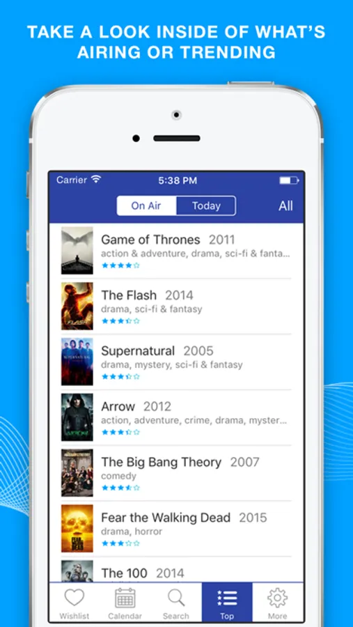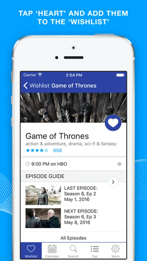 Add tv shows you like to your own 'Wishlist' and let the app take it from there.
