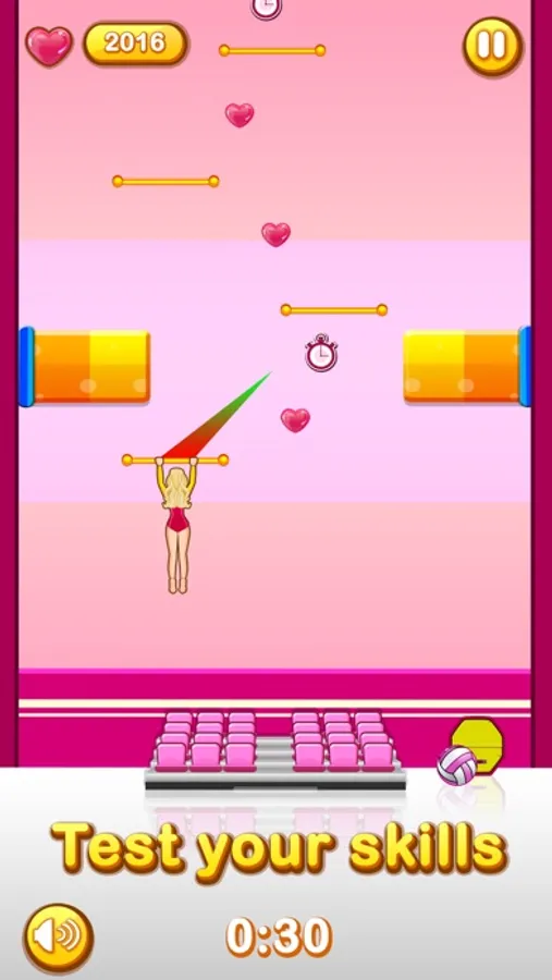 Spin and jump high as you grip from one bar to another, collect hearts and power ups along the way. Perform your best routine and win the championship.