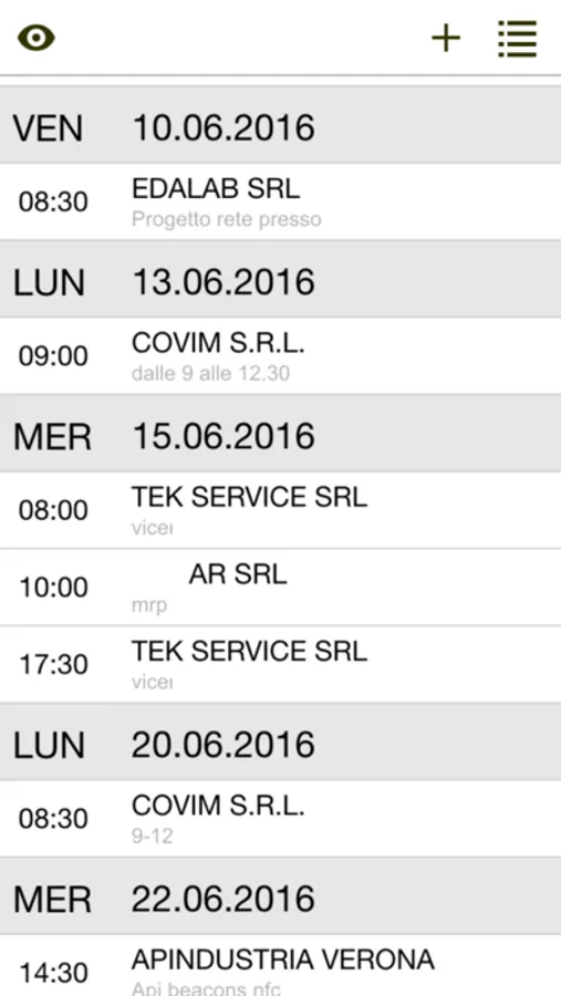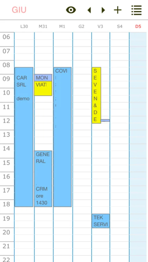 Agenda settimanale con visualizzazione appuntamenti interni, esterni, personali, confermati e da confermare