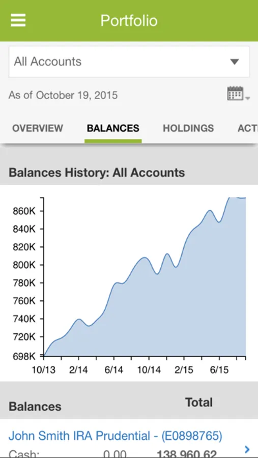 Investor360°® gives you the power to view an executive summary of your complete financial picture. Instead of waiting to get your statements on paper, you can log in to the Investor360° app 24/7 and see the same information your financial advisor sees when reviewing and maintaining your accounts.