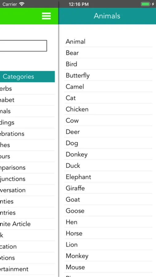 This app is designed to be child-appropriate, with the inclusion of a large number of signs in categories such as Animals, Colours, Food, Sports and many others.