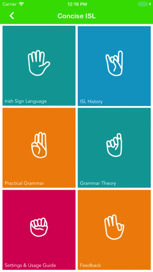 This mobile app was developed by two young Irish engineers, one of whom is a life-long practitioner of Irish Sign Language, in response to the need for digital resources to support sign language learning in Ireland. Our aim is to provide a comprehensive ISL dictionary system in an easy-to-use form.