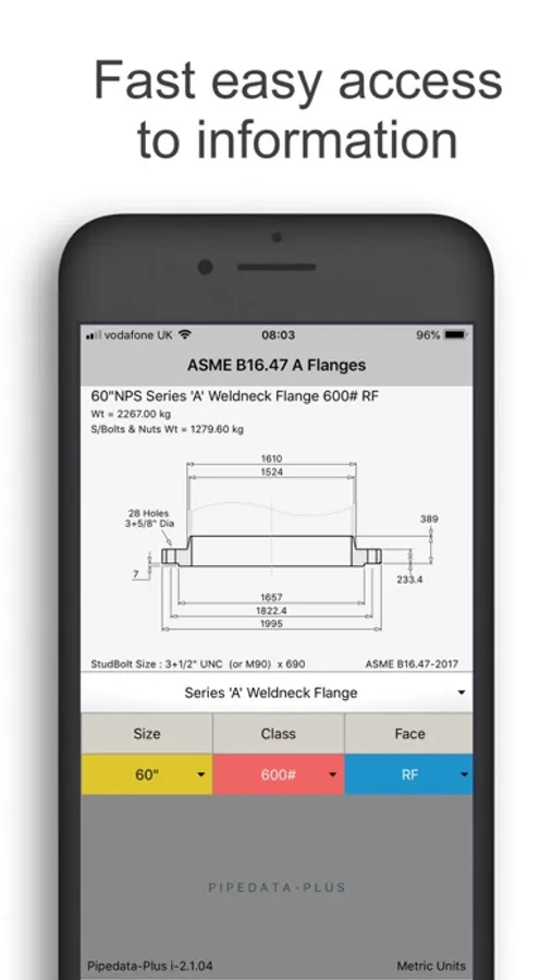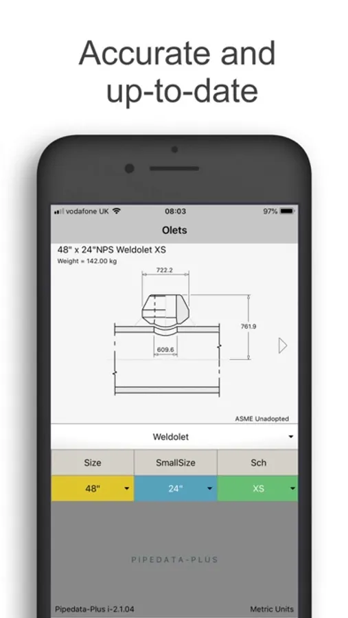 Based on the latest ASME piping dimensional specifications it shows Metric, U.S. Customary Units and Inch Fractions, NPS and DN pipe sizes and includes audited valve weights, flange and pipe weights and all piping component weights.