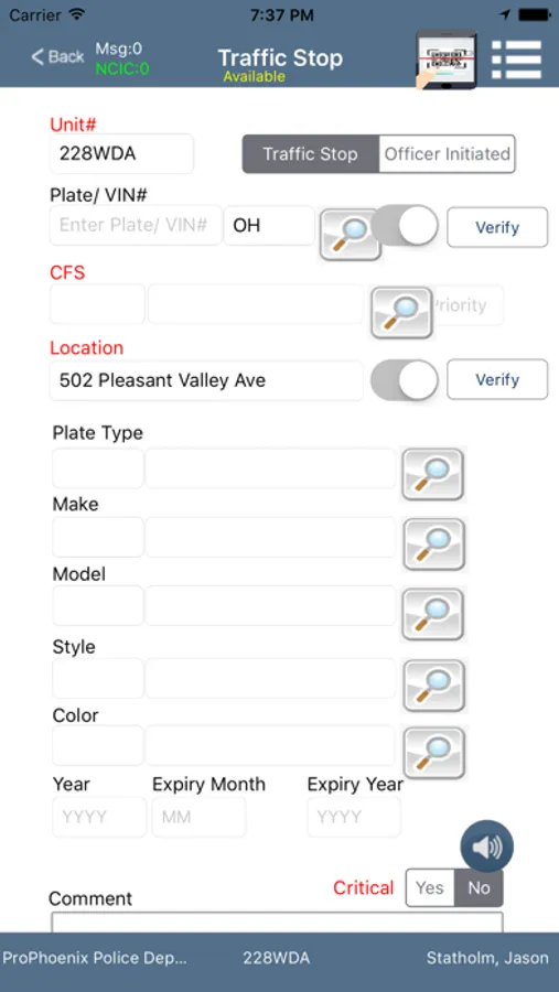 · Direct call creation for traffic stops and officer initiated activity