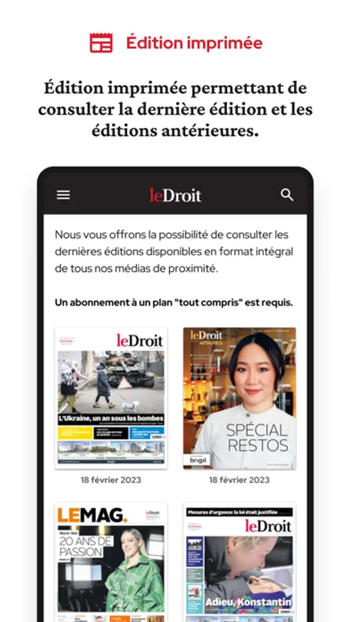 Autre nouveauté : l'utilisation de l'application est maintenant ouverte à tous tout en demeurant gratuite. En revanche, elle prend toute sa pertinence lorsqu'elle est jumelée à l'un de nos forfaits d'abonnement qui vous permettra de déverrouiller l'accès à l'ensemble de nos contenus ainsi qu'à certaines fonctionnalités réservées exclusivement à nos abonnés.