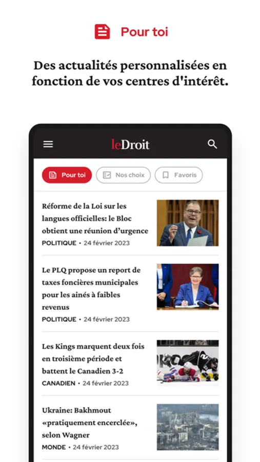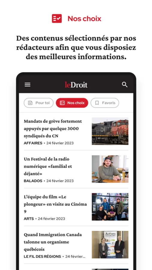 Votre temps est compté ? Découvrez la section Les essentiels où vous aurez le choix entre la vue Pour vous, un fil de nouvelles taillé sur mesure en fonction de vos intérêts et Nos choix, un fil de nouvelles triées sur le volet par notre équipe de rédaction.