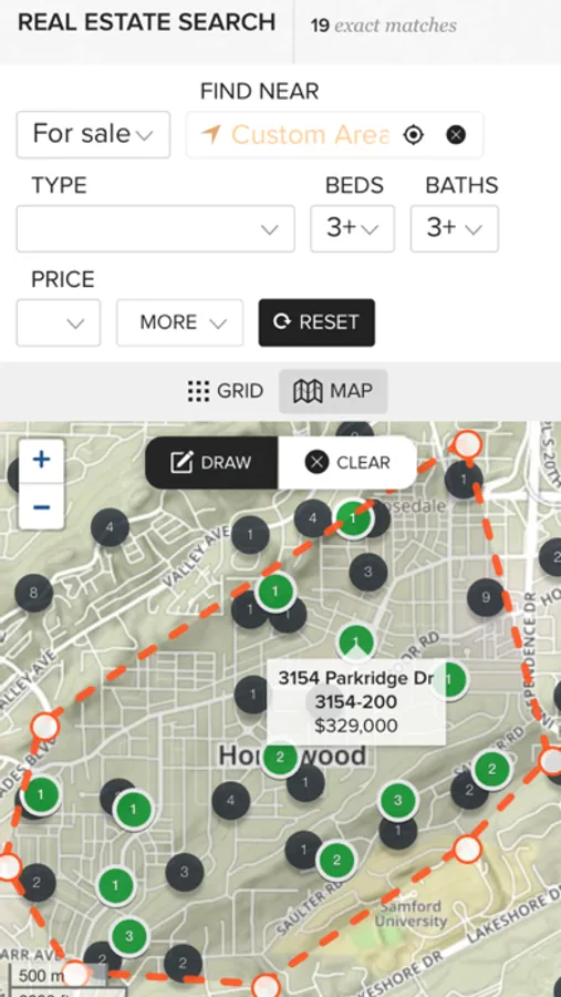 • Interactive Maps: Feel free to zoom in and out of the neighborhood so you know what is close by – and define your own ideal geography by drawing your own shapes
