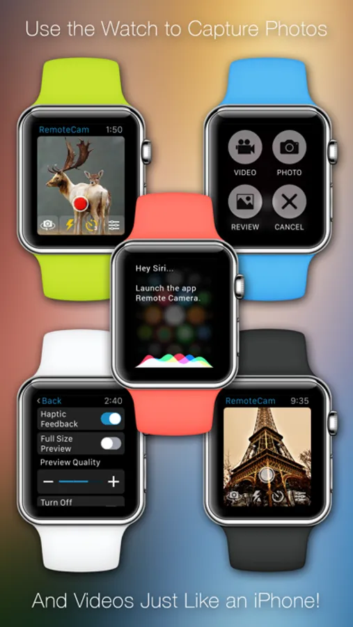 Just Say "Hey Siri, Launch Remote Camera..." to open RemoteCam on both the iPhone and Apple Watch.