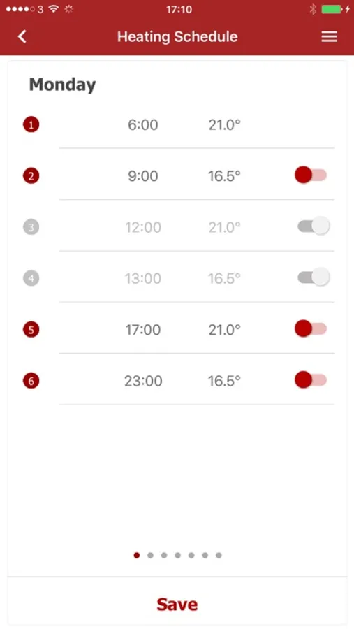 View and change your heating schedule: One of the key benefits of your OJ Microline® Touch thermostat is its schedule function, where the thermostat automatically adjusts heating levels to match your usual timetable. However, sometimes you need a bit of flexibility, and this app lets you override the schedule to adjust temperatures as you wish – from any location including your home.