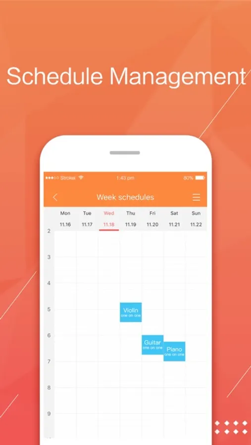 1. Class schedule: check the class schedule for this week, the system will automatically send class reminders one hour before class, and the course adjustment and attendance results will be automatically synchronized to the APP.