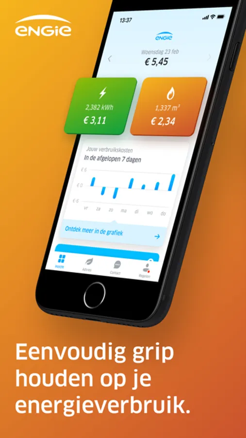 De ENGIE-app maakt het je makkelijk. Hierdoor hou je energie over. Letterlijk en figuurlijk. Hij is namelijk heel plezierig in gebruik en je ziet heel eenvoudig waar je kunt besparen.