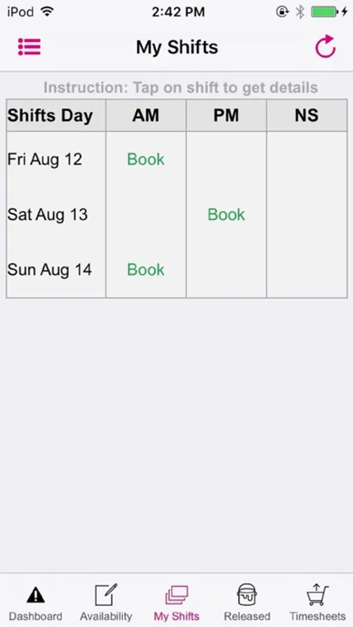 • Released (Shifts) - Accept or Decline Unassigned shifts that are released for the first person to respond, Wins !!
