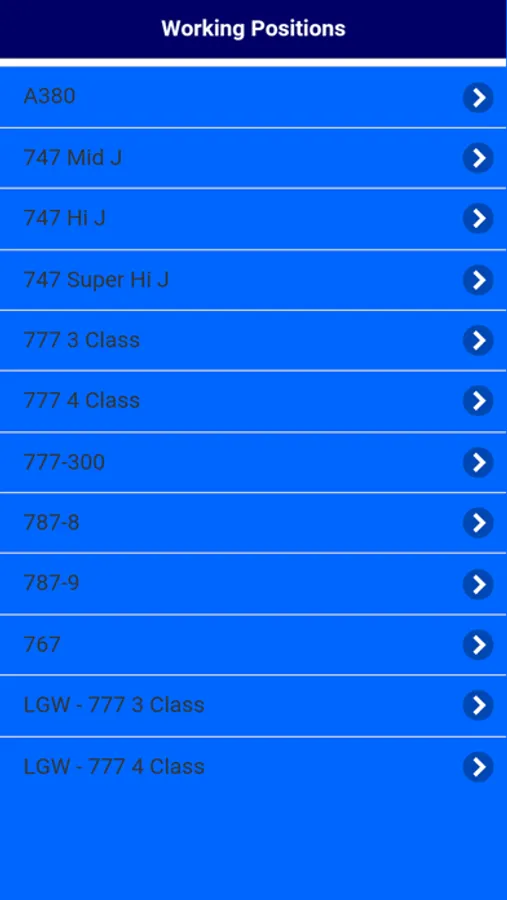 Working positions for all BA longhaul aircraft and variants, sorted by breaks and responsibilities. Use in pre-flight briefing to help you choose your working position. Click each position as it is chosen. It disappears, leaving remaining positions available to choose from. No more writing positions down and crossing off and working out which break, or if duty free or galley. Easy!