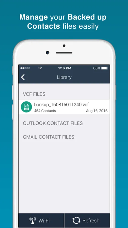 Import your contact from vCard, Outlook or Gmail Contact File, and Share contacts file with your computer via WIFI network.