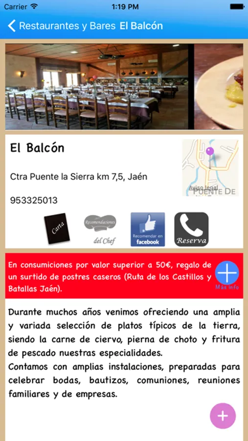 Accede directamente al Facebook del restaurante o comparte con tus amigos en cualquier red social. Son algunas de las opciones que vas a tener a un click.