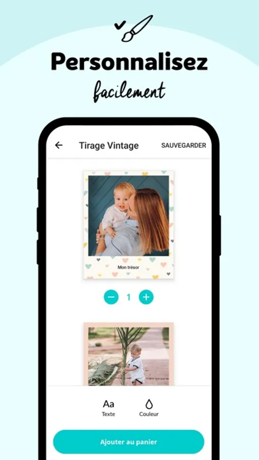 - Personnalisation de votre Tirage photo, Livre photo, Tirages Rétro, Toiles, Calendrier, Posters, Posters encadrés, Magnets ou Album photo depuis votre téléphone et votre appli mobile