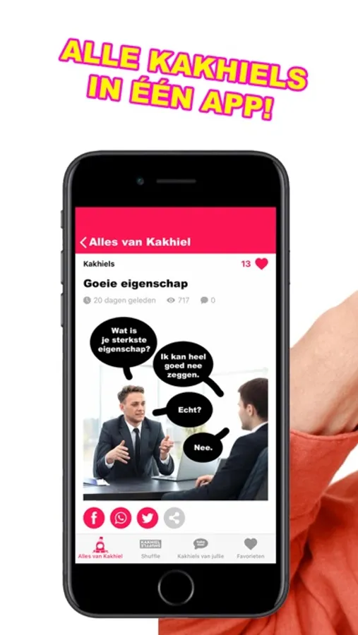 Hallo, ken je dat? Dat je bij het stoplicht aan komt fietsen en dat ie dan net op rood springt? Echt super irritant, vooral als je honger hebt want dan moet je nog langer wachten voordat je kunt eten. Eigenlijk zouden ze in alle stoplicht-palen van die luikjes moeten bouwen waar je snacks uit kunt trekken, net als bij de FEBO. Maar dat zal de minister van Infrastructuur en Waterstaat wel weer een te groot risico vinden omdat eksters er dan mee aan de haal gaan. Ze zeggen dat die beesten heel slim, behendig en sluw zijn haha. Maar ik geloof er geen zak van. Gelukkig is er nu wel weer deze nieuwe versie van de Kakhiel app, daarmee kun je je ook prima vermaken bij het stoplicht. Veel plezier ermee en vergeet niet dat je mosterd na opening het best in de koelkast kunt bewaren. Doei.