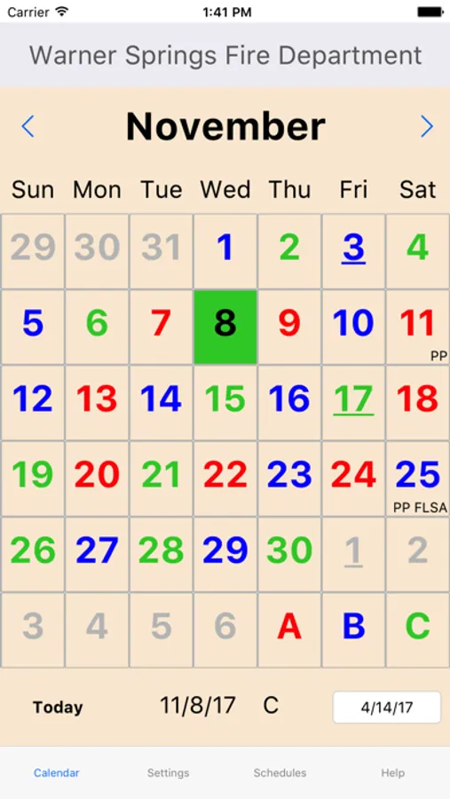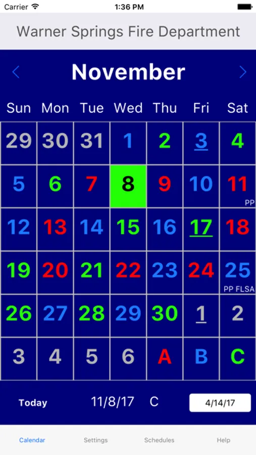 ShiftCal® is a platoon-based calendar for emergency service personnel working 24-hour shifts.