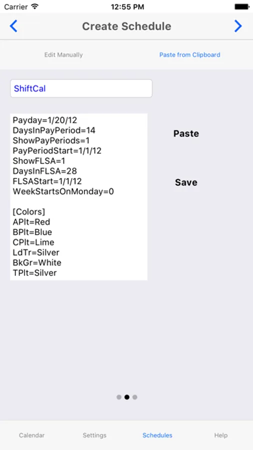 Quickly create new shift schedules using the "Paste from Clipboard" option - see the "Help" tab.