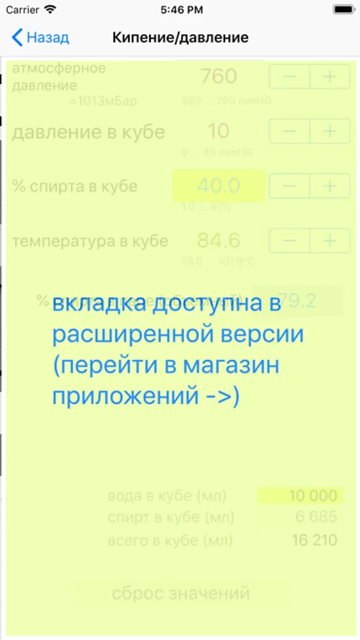 Больше доступных функций в расширенной версии КалькуляторСпирта+ (платная, небольшая поддержка автора).