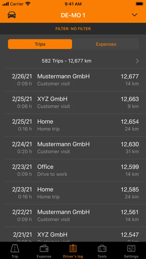 Driverslog Pro 2 is free for private and volunteer use. For business use a business license is required which can be purchased for a monthly or annual fee. This fee guarantees the continuous maintenance, development and support. Regardless of this, your data can of course be viewed and exported at any time. Further information can be found in the license settings and license terms in the app.