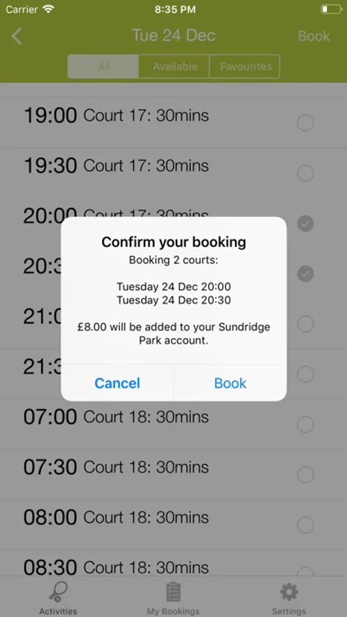 - Make squash & tennis court bookings (including multiple tennis court slots in one tap!)