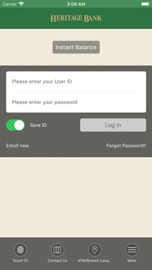 Heritage Bank allows you to bank on the go. It’s free to download and offers quick access for managing your bank accounts. Check your account balances, transfer funds, pay bills, locate ATMs and bank branches with just a touch. It is available 24/7 using your existing Internet Banking access ID and password.