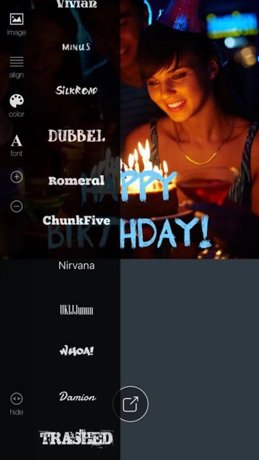 In just a few taps, you can add a beautiful text to your favorite picture. You can easily share your artwork on any type of social networking service such as Facebook, Twitter, Instagram etc.